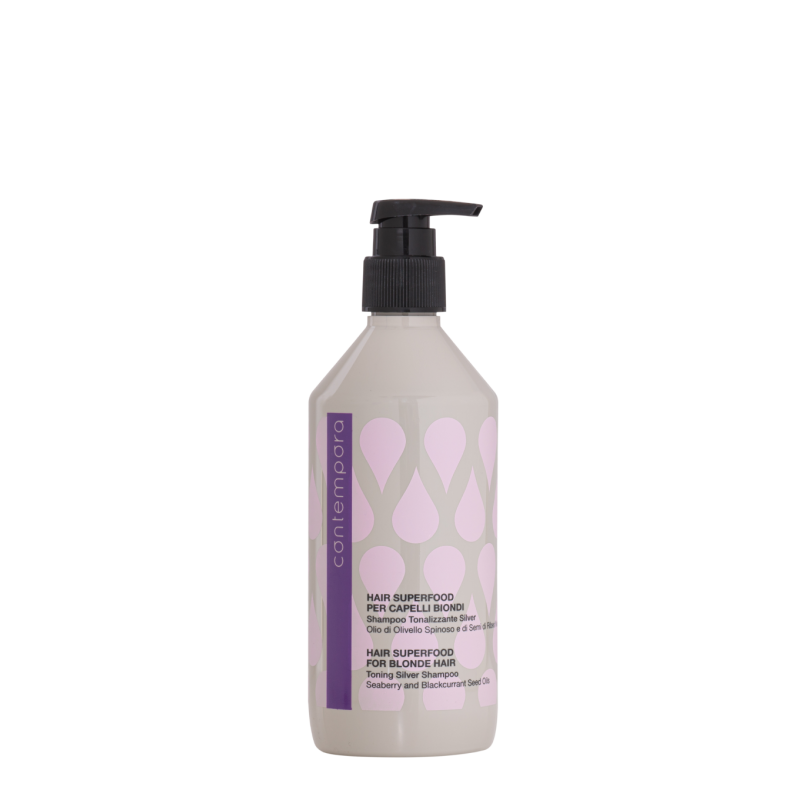 Con pigmenti blu-viola neutralizza i toni gialli dei capelli bianchi, biondi e decolorati per un colore sempre brillante, freddo e uniforme. Contrasta la foto-ossidazione e apporta nutrimento, rafforza i capelli donando morbidezza. Con filtri UV per proteggere il colore dagli effetti dannosi del sole. Contempora Shampoo Tonalizzante Silver arricchito con Olio di Olivello Spinoso e di Semi di Ribes Nero.